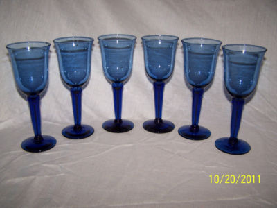 "VINTAGE" 6 SOLID "COBALT BLUE" FOOTED WINE GLASSES "BEAUTIFUL"