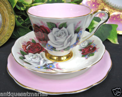 Title (ebay affiliate link): QUEEN ANNE AWESOME ROSES TEA CUP AND SAUCER PINK TEACUP TRIO HPT ROSES