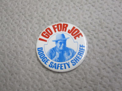 Title (ebay affiliate link): Mopar "I Go For Joe" Dodge Boys Safety Sheriff collectible pin 2" 1960's