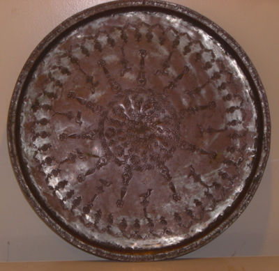 Title (ebay affiliate link): Antique Egyptian,Hand Hammered Copper Serving Tray/Round-Silver Washed&Impressed
