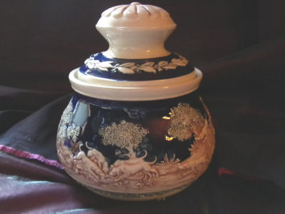 Ceramic Jar with Hunt Scenes in relief made in Germany