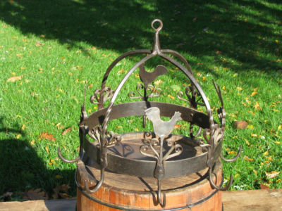 HAND WROUGHT IRON HANGING POT RACK & UTENSIL RACK