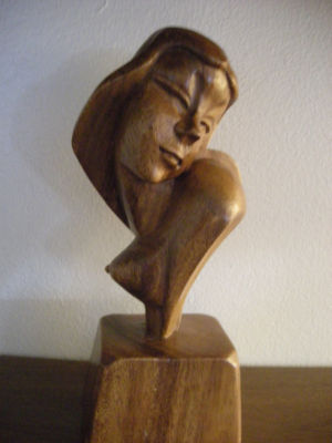 Vintage Art Deco Carved Wood Sculpture Nude Woman