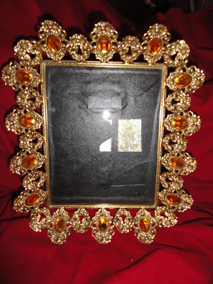 Title (ebay affiliate link): Rare Jeweled Picture Frame~Orante Brass 14 Amber Glass Oval Accents 8 x 10 Hvy