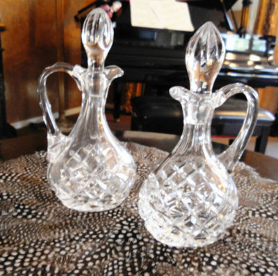Beautiful Hand Cut Polish Lead Crystal Oil and Vinegar Cruets