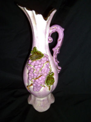 Title (ebay affiliate link): VINTAGE PITCHER PORCELAIN-CERAMIC POTTERY VASE GRAPES IN 3D GOLD TRIM 14.5" OLD