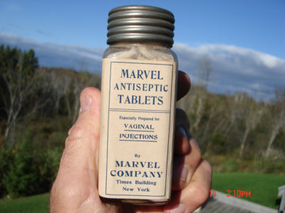 Title (ebay affiliate link): Antique Medicine Bottle Marvel Antiseptic Tablets Vaginal Injections NY Quack