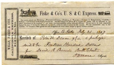Title (ebay affiliate link): WELLS FARGO CALIFORNIA EXPRESS ILLUSTRATED 1857 FISKE & CO. U.S. & C. EXPRESS