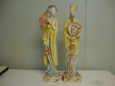 VINTAGE PAIR ORIENTAL 14" TALL FIGURINES