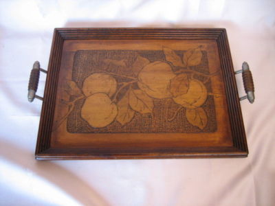 Antique Arts & Crafts Wooden Tray Apples, Poiltillism German c1900