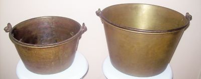 2 19th CENTURY BRASS BUCKET KETTLE POT HAYDEN'S & OTHER