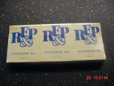 Title (ebay affiliate link): RFP (Richmond,Fredericksburg & Potomac) Railroad Matchbooks (6). New in package.