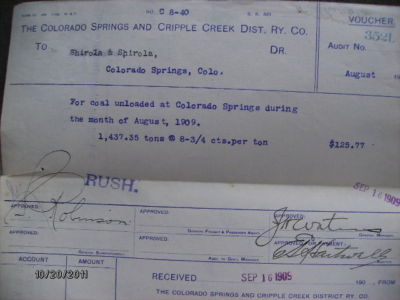 COLORADO SPRINGS & CRIPPLE CREEK DISTRICT RAILWAY 1905 VOUCHER