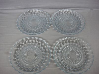4 ANCHOR HOCKING DEPRESSION LIGHT BLUE BUBBLE BREAD & BUTTER PLATES