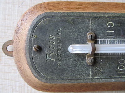 Vintage wood glass brass copper Tycos Thermometer Rochester NY USA Antique WORKS