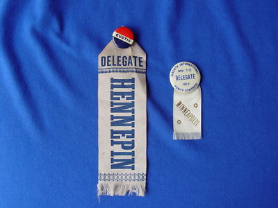 Title (ebay affiliate link): VINTAGE POLITICAL PINBACK RIBBONS MINNEAPOLIS MN HENNEPIN CNTY DELEGATES