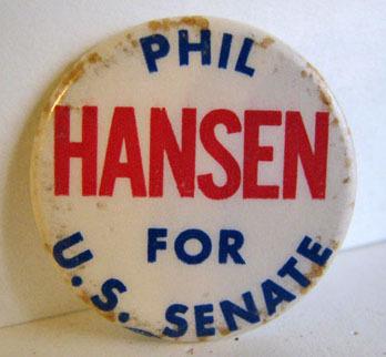 Title (ebay affiliate link): Political South Dakota ?) Democrat Pinback Phil Hansen for U.S. Senate