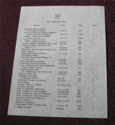 Title (ebay affiliate link): JFK's Personally Owned 16mm Film List from 1963 - Direct from White House Files
