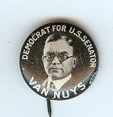 INDIANA U.S. SENATOR FREDERICK VAN NUYS POLITICAL CAMPAIGN BUTTON