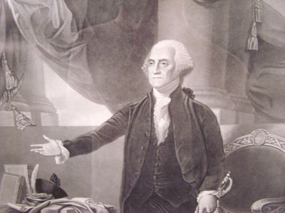 Antique Engraving Standing George Washington After Gilbert Stuarts Painting yqz