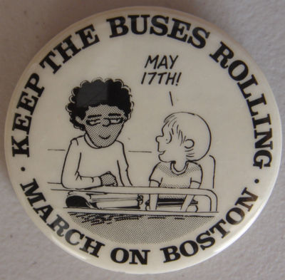 Title (ebay affiliate link): March on Boston NAACP Rally May 17, 1975 Pinback KEEP THE BUSES ROLLING Trudeau