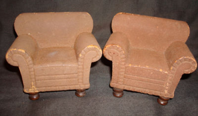Title (ebay affiliate link): 2 Vintage/Antique Miniature Doll House Furniture Overstuffed Large Brown Chairs