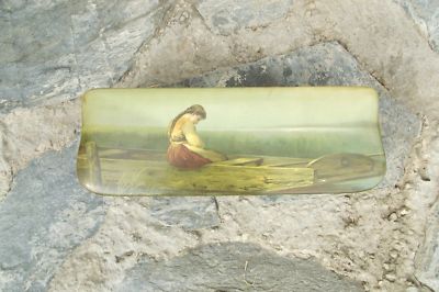 Antique Victorian Lacquered Paper Mache Girl Boat Scene Glove Box
