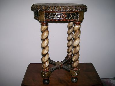antique hand carved oak barley twist side table