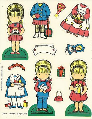 Title (ebay affiliate link): Vintage 80's Hallmark Joan Walsh Anglund Paper Dolls Sticker Sheet