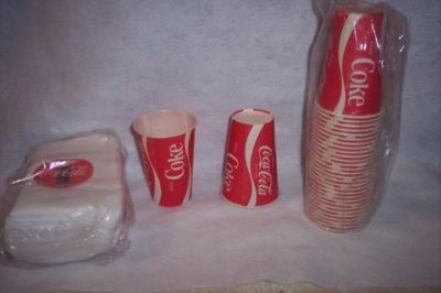 Title (ebay affiliate link): COKE RETRO LOT NAPKINS & WAX LINED PAPER CUPS COCA-COLA SODA COLLECTIBLES Party