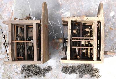 Title (ebay affiliate link): Two Antique Black Forest Clock-works for spares/repairs