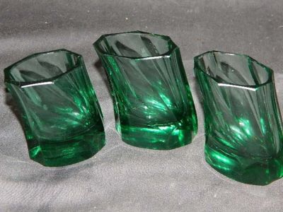 3 Individual Vintage Small Heavy Green Glass Cigarette? Holders