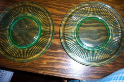 VINTAGE GREEN DEPRESSION GLASS PLATES 2