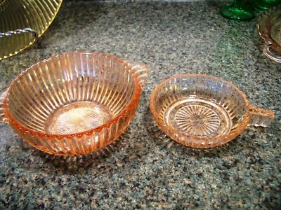 Title (ebay affiliate link): Queen Mary Pink Depression Glass Bowl Lot dbl & single handled