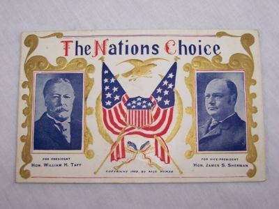 Title (ebay affiliate link): 1908 post card TAFT- SHERMAN CAMPAIGN EMBOSSED POSTCARD "the nations choice"
