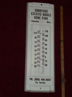 VTG Tin Thermometer Sunnyside Estates Mobil Home Park Ishpeming MIchigan