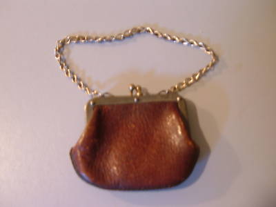 Antique Leather Coin Purse w/ chain strap Doll