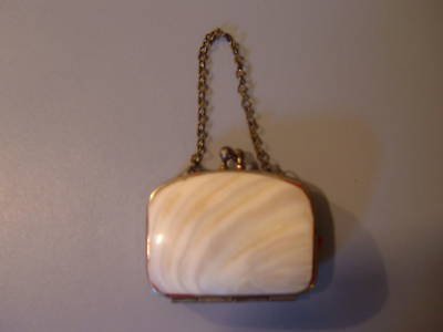 Antique Mother of Pearl Coin Purse with Chain Doll