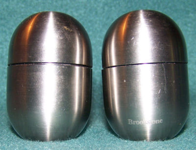 Title (ebay affiliate link): Brookstone ~Salt & Pepper Shakers~Weighted Bottoms~