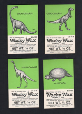 Title (ebay affiliate link): 1960'S WACKY WAX DINOSAURS TRADING CARDS LOT X 4 NO.S 22, 23, 24, 25