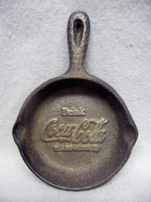 Title (ebay affiliate link): ANTIQUE CAST IRON SMALL TOY " DRINK COCA COLA " SKILLET ASHTRAY 00 SIZE RARE