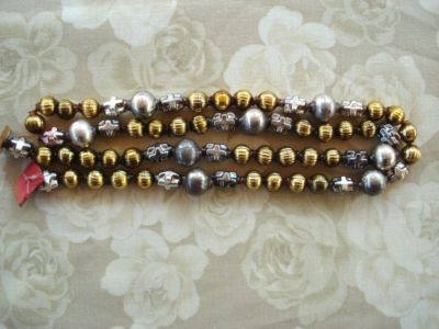 Title (ebay affiliate link): Vintage RARE Shaped BEADS Gold SLVR Mercury GLASS Christmas GARLAND Ornament 23"