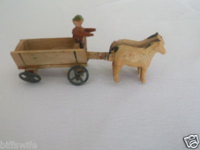 Title (ebay affiliate link): VINTAGE "ERZGEBIRDGE" TWO HORSE DRAWN HAY WAGON - BUGGY BY MAN PUTZ VILLAGE