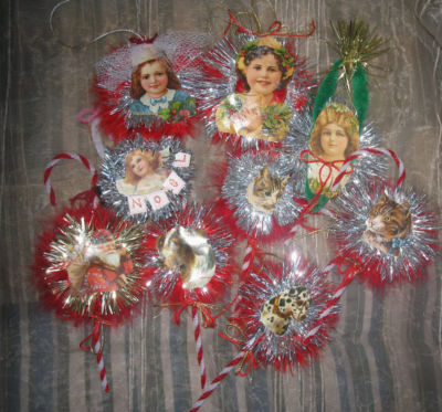 Victorian Scrap Tinsel Ornament Lot Handmade