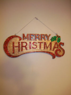 Vintage Retro Merry Christmas sign wreath door wall greeter ornaments primitive