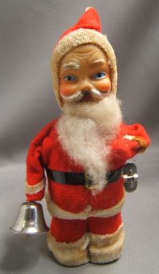 Title (ebay affiliate link): Vintage Bell Ringing SANTA in Red Outfit WIND-UP Figure Great Action & Working