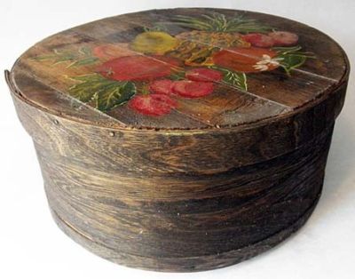 Title (ebay affiliate link): Antique Vintage Folk Art Wood Round Box & Lid Shaker Style Oak Hand Painted