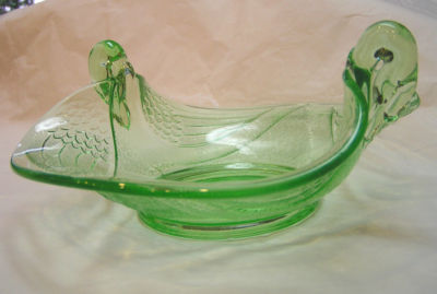 Title (ebay affiliate link): ELEGANT 1938,6" FENTON/DUGAN SWAN BOWL-CURVED GREEN GLASS-GRACEFUL NECK HANDLES