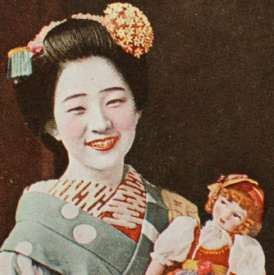 ANTIQUE JAPANESE MAIKO HOLDING DOLL PICTURE POSTCARD