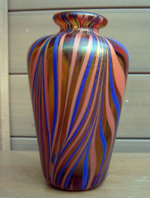 Title (ebay affiliate link): ANTIQUE ART DECO PAPERWEIGHT PULLED FEATHER IRIDESCENT AMBER ART GLASS VASE